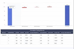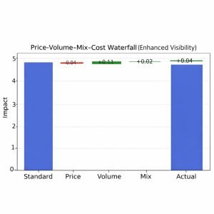 This manufacturing efficiency waterfall links standard-to-actual cost variances withformulation-level drivers, pinpointing where price, mix, and yield inefficiencies inflateproduction cost.