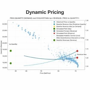 This chart illustrates how Dynamic Pricing balances price, demand, and revenue bysimulating optimal price points that maximize revenue under changing marketconditions.